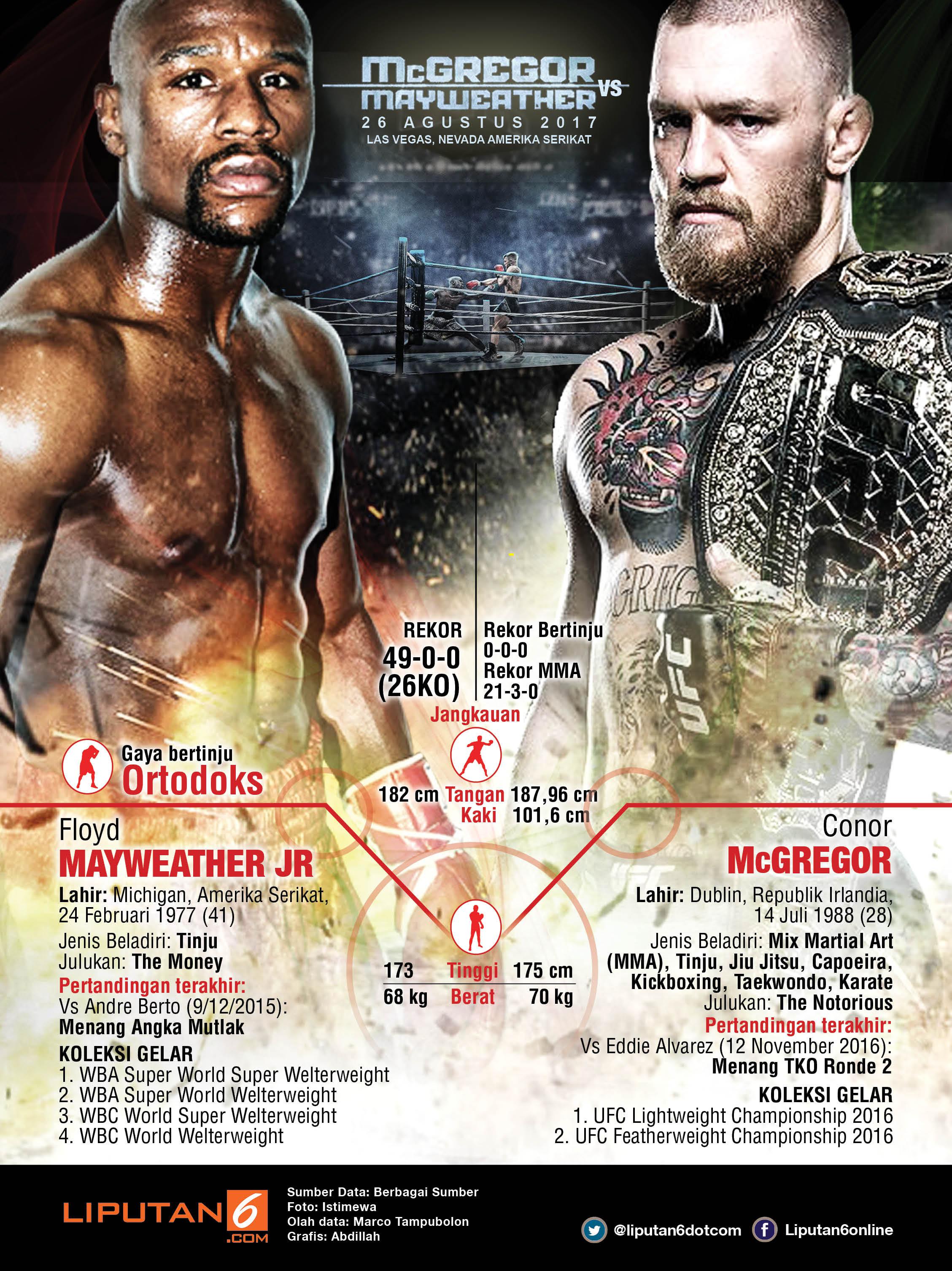 Sebaliknya, McGregor terbilang anak bau kencur di dunia tinju. Meski tidak ada yang meragukan kemampuannya di ajang Ultimate Fighting Championship (UFC), petarung Republik Irlandia tersebut belum pernah tampil dalam aturan tinju profesional.