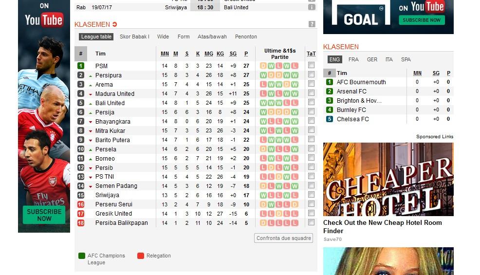 Klasemen sementara Liga 1 2017: