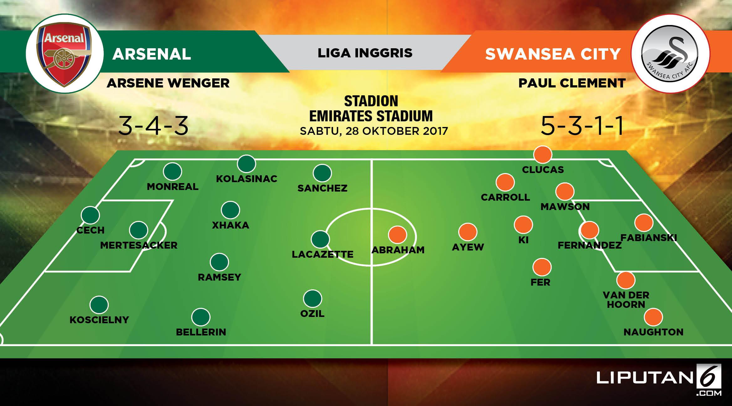 Liputan6.com, Jakarta- Arsenal kembali melakoni laga sengit di lanjutan Liga Inggris akhir pekan ini. Sabtu, 28/10/2017, The Gunners akan menjamu Swansea City di Emirates Stadium.