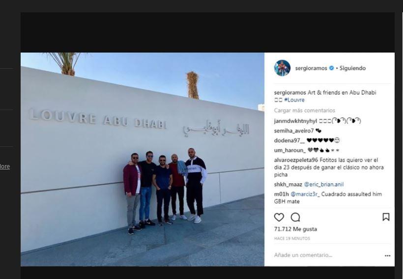 Tidak mau ketinggalan, bek veteran Real Madrid, Sergio Ramos, juga memanfaatkan waktu luangnya dengan plesiran. Dia memilih berkunjung ke museum ternama, Louvre Abu Dhabi.