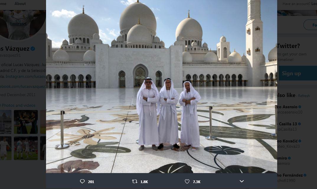 Lucas Vazquez adalah salah satu pemain Madrid yang menikmati waktu jeda di Abu Dhabi. Pemain asal Spanyol itu bahkan menyempatkan diri mengunjungi salah satu masjid megah di sana.