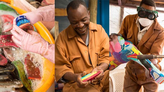 Mereka mengubah sandal jepit yang mereka temukan di sepanjang pantai dan perairan Kenya. Baik sandal yang ditinggalkan pemiliknya di pantai atau sandal yang berasal dari pembuangan di laut dan terdampar di pesisir pantai.