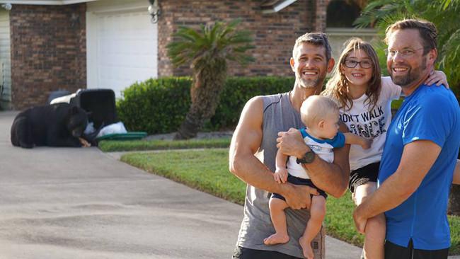 Tidak hanya video dan foto dari beruang tersebut, Dustin juga turut mengabadikan kejadian itu dengan berfoto bersama anaknya dan tetangga di depan beruang.