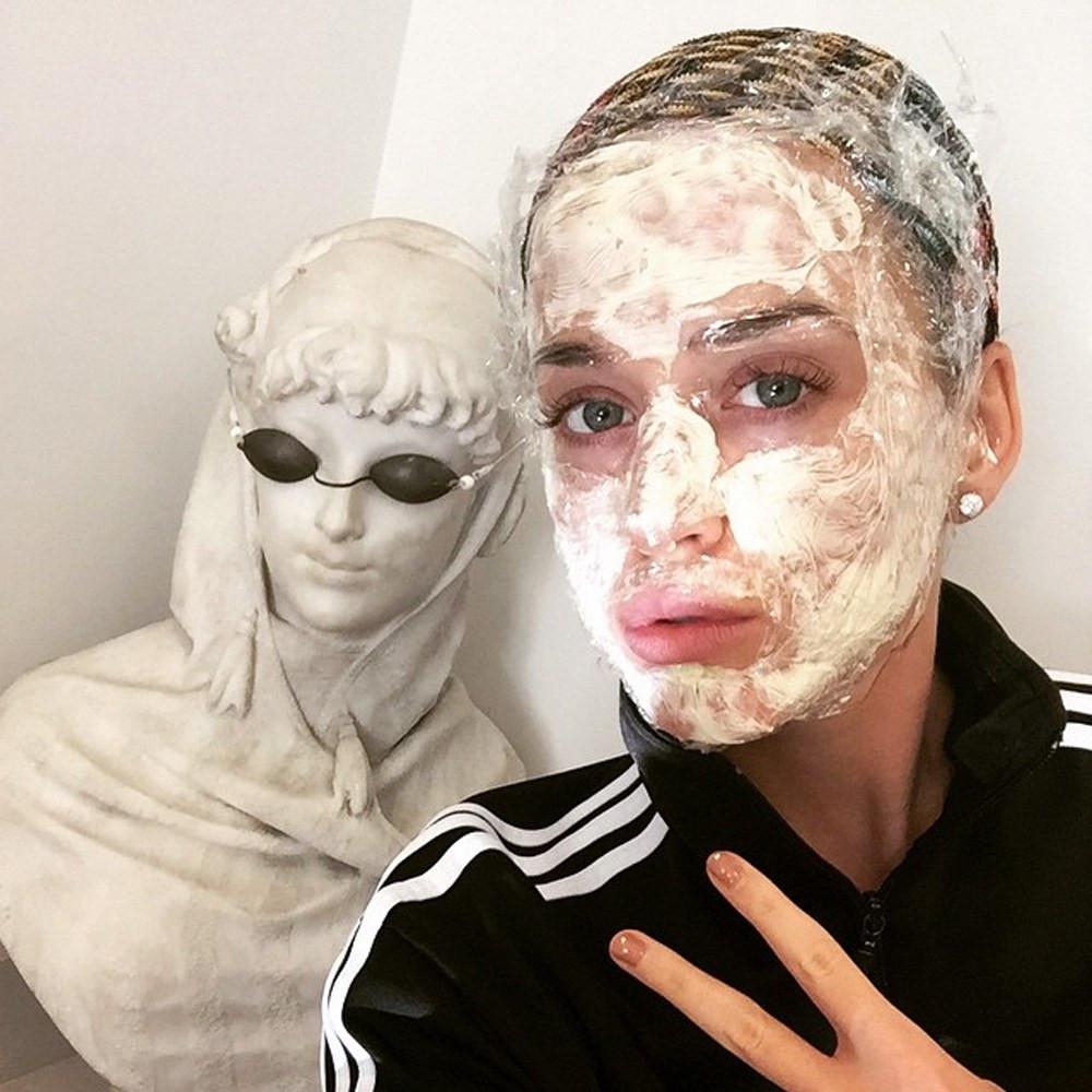 Bisa dibilang Ashley Benson mengunggah foto selfie dengan wajah penuh krim jerawat yang terbaik. Lihat bagaimana wajah cantiknya sama sekali tidak terpengaruh dengan krim jerawat tersebut.