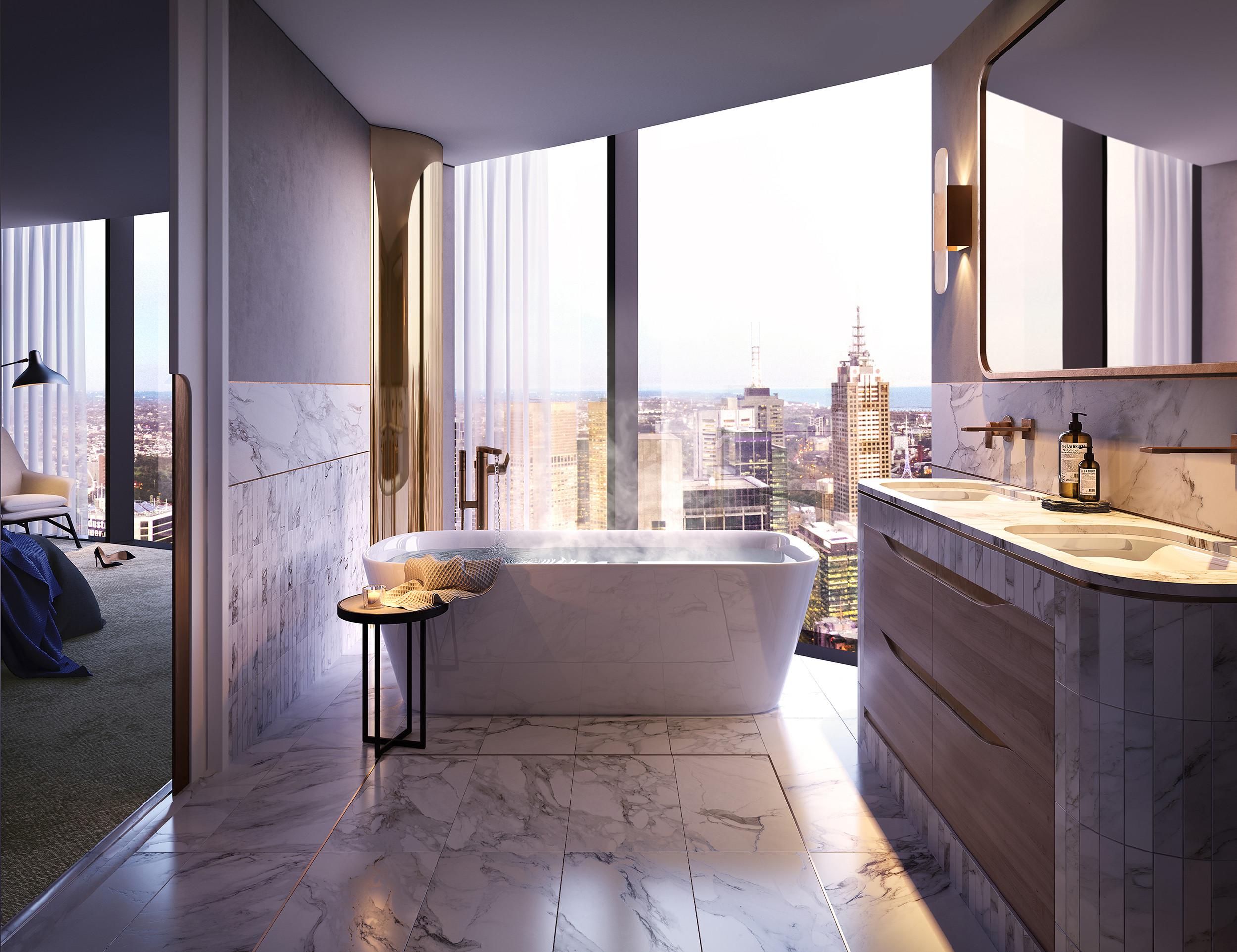 Ruangan juga dilengkapi dengan kaca yang besar sehingga penghuni bisa langsung melihat keindahan kota Melbourne dari jendela. Kesan terang dan luas pun semakin dapat dirasakan dengan desain interior yang modern.