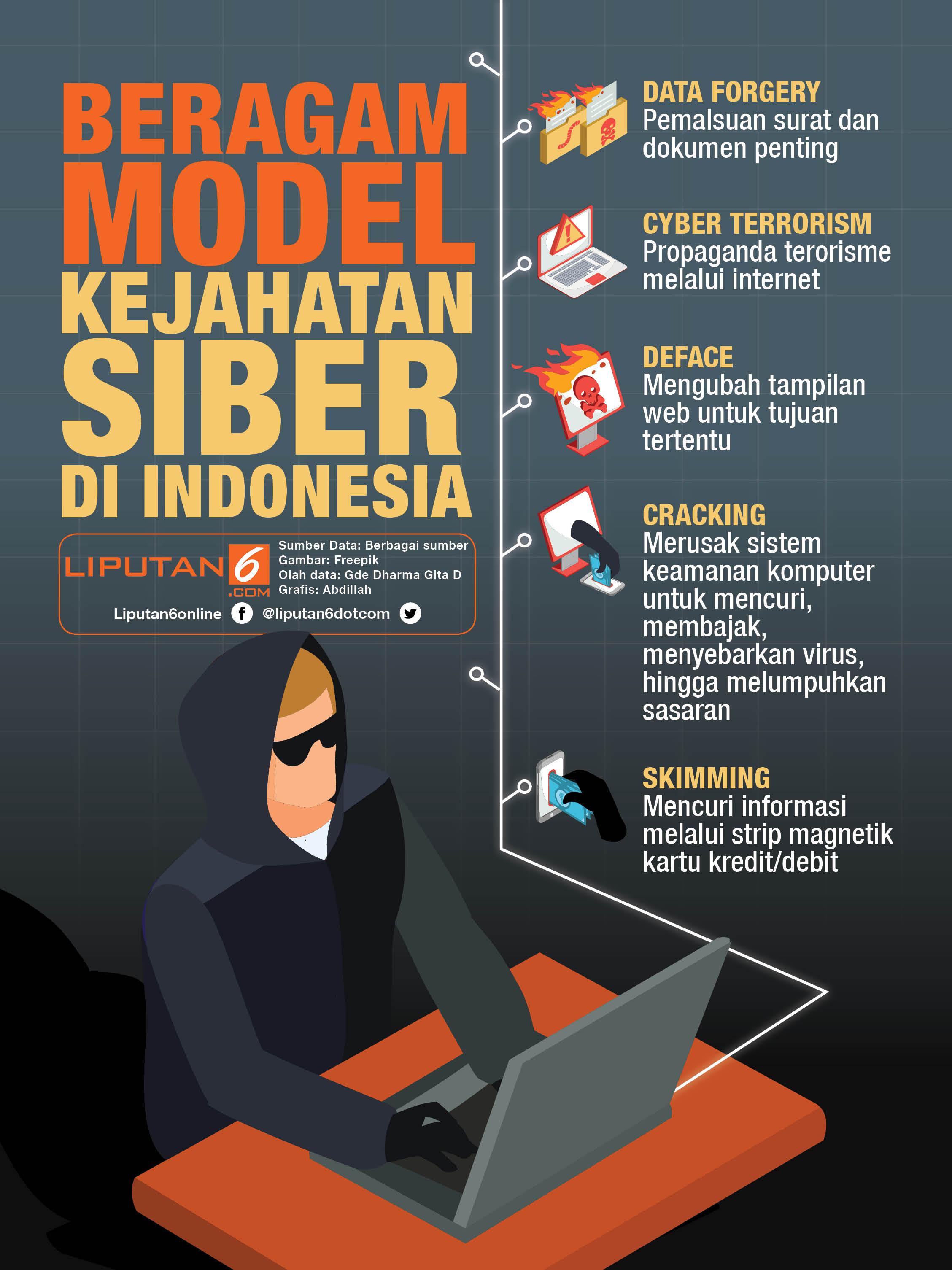Laju pertumbuhan kejahatan finansial siber di Indonesia, diakui Bambang, terus meningkat. Kasus yang paling banyak terjadi adalah skimming. "Dari 2011 sampai 2017 ini, kejahatan skimming yang saya tangani terus meningkat."