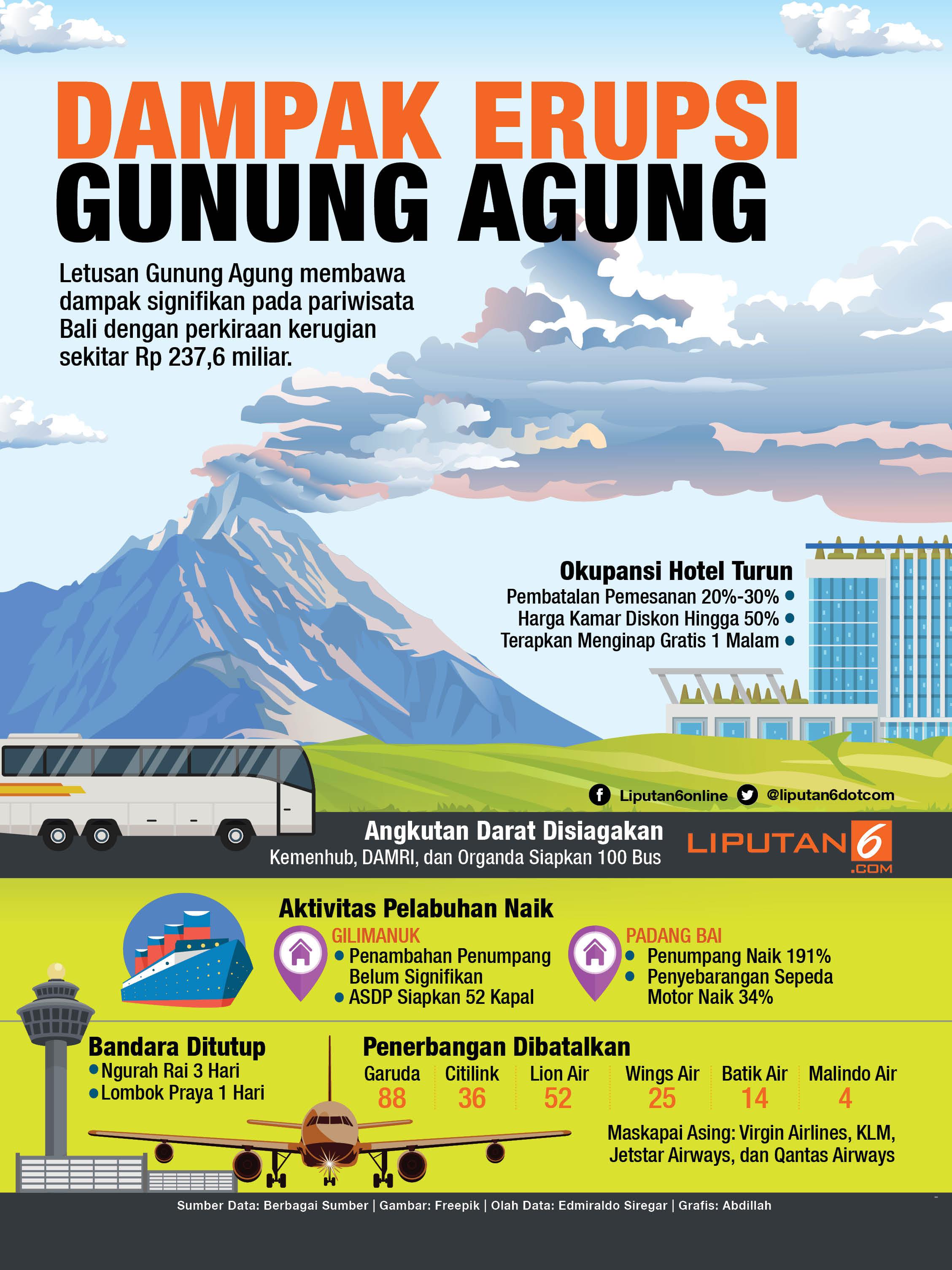 Selain penutupan bandara, letusan Gunung Agung juga berdampak pada sektor lain. Selengkapnya dapat dilihat dalam Infografis di bawah ini.