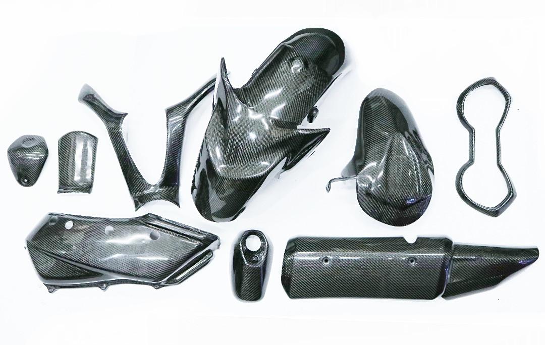 Seperti yang ditawarkan Layz Motor, dengan 13 aksesori karbon, mulai cover spidometer, list dashboard, cover tutup tangki, cover setang, sepatbor depan, cover knalpot, cover ujung knalpot, cover filter, huger, batok depan, cover stop lamp, cover cvt, dan body protector.