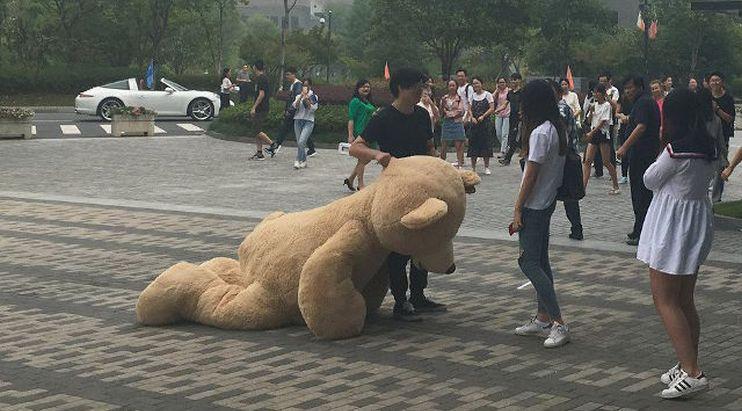 Namun, hal itu rupanya kurang cukup bagi seorang pria asal Tiongkok. Untuk mendapatkan sang pujaan hati, pria yang tidak disebutkan namanya ini rela membawa beruang raksasa menggunakan mobil Porsche.