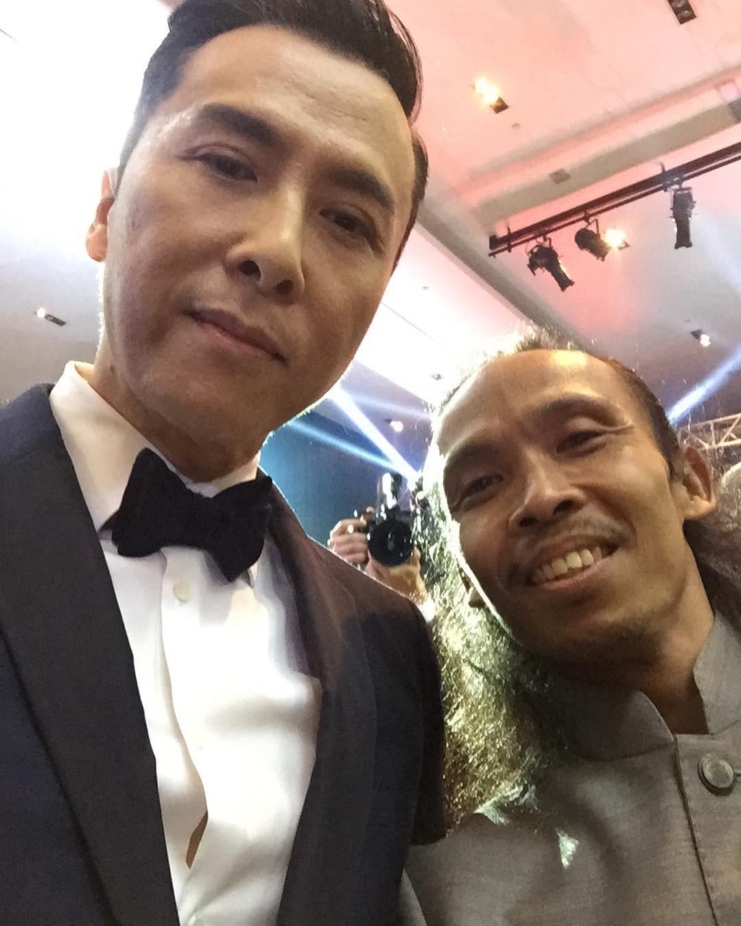 Ia langsung mengambil kesempatan untuk mengambil selfie dengan Donnie Yen, yang lantas diunggah ke akun Instagram miliknya, @yayanruhian. Dalam foto tersebut, Donnie tampil rapi dengan jas dan dasi kupu-kupu, sementara Yayan Ruhian yang tersenyum mengenakan atasan abu-abu yang dikancing rapi.