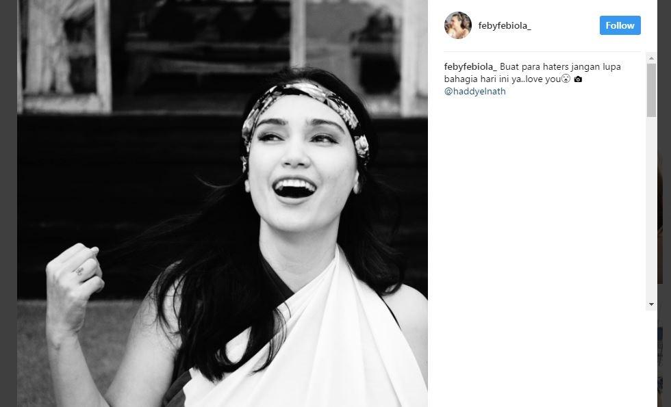 Foto pertama memperlihatkan Feby Febiola yang tengah membelakangi kamera. "Bodo Amat," tulis sang artis. Foto kedua menunjukkan pose tertawa, disertai tulisan provokatif, "Buat para haters jangan lupa bahagia hari ini ya..love you."