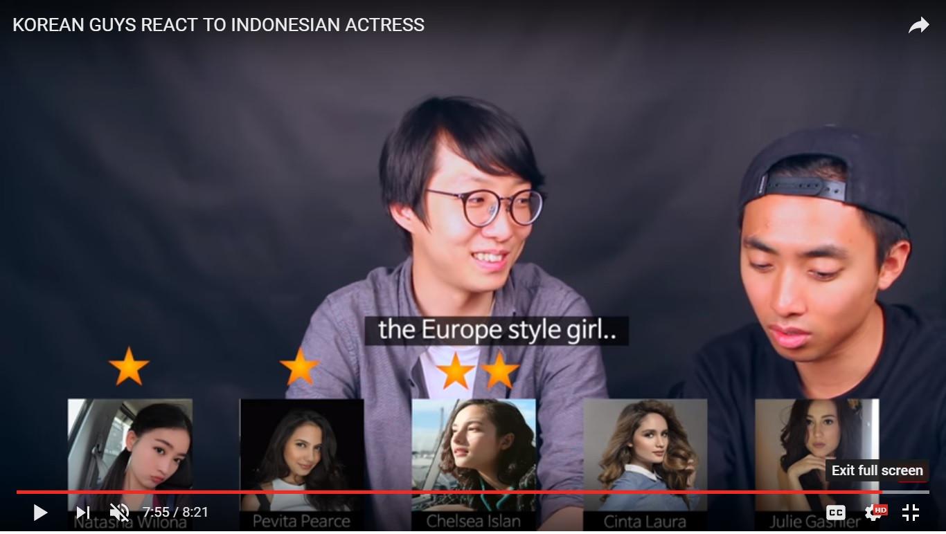 Dalam sebuah video yang diunggah akun Loving Korea di YouTube, dua dari empat cowok Korea Selatan sepakat menyatakan Chelsea Islan paling cantik jika dibandingkan dengan empat artis lain. Tak main-main, empat artis itu adalah Pevita Pearce, Julie Estelle, Natasha Wilona, dan Cinta Laura.