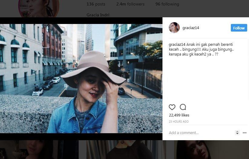 Seperti yang disampaikan Gracia Indri dalam Instagram pribadinya, Rabu (23/8/2017). Dengan mengunggah ulang salah satu foto sang adik, Gracia Indri berkata dalam keterangan foto, "Anak ini gak pernah berenti keceh .. bingung!!!! Aku juga bingung.. kenapa aku gk keceh2 ya .. ??"