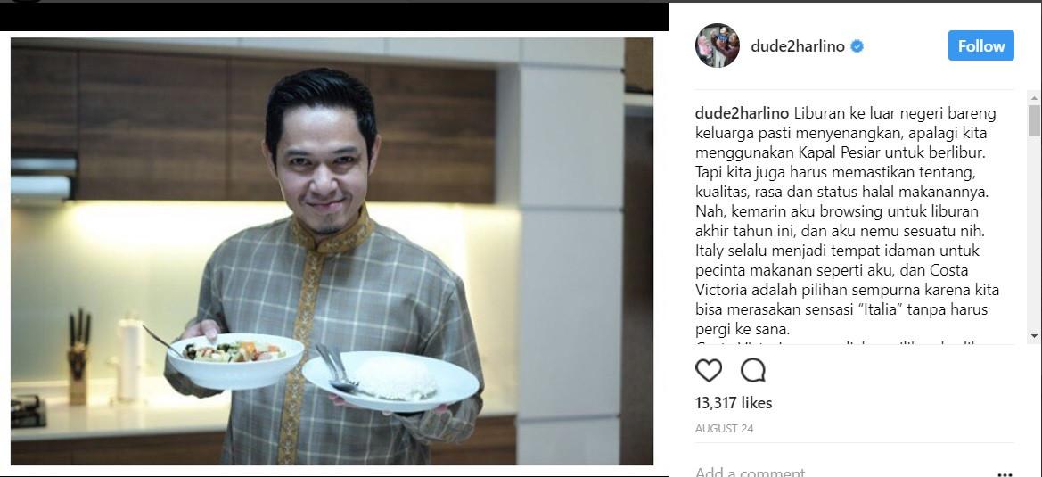 Hal itu terlihat di akun @dude2harlino, pada unggahannya, ia mengatakan “Liburan ke luar negeri bareng keluarga pasti menyenangkan, apalagi kita menggunakan Kapal Pesiar untuk berlibur”