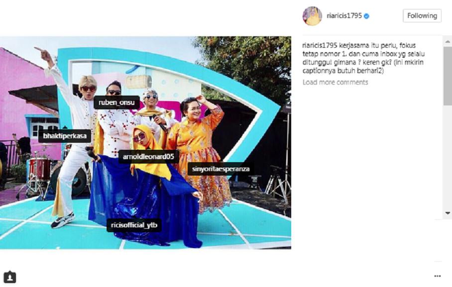 Sementara itu, Ria Ricis seolah tak mengindahkan kejadian ini. Dalam akun Instagram-nya, Ricis bahkan masih mengunggah kebersamaan dengan Bhakti Perkasa. Dalam foto itu juga ada beberapa rekan presenter lainnya, saat hendak membawakan acara Inbox SCTV. Mereka semua menunjukkan wajah ceria.