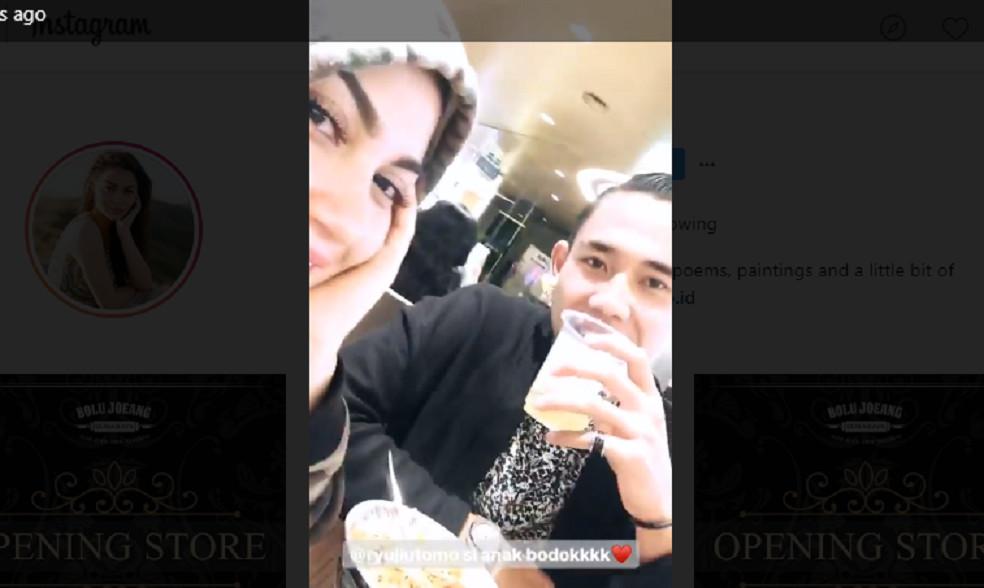 Sementara dalam keterangan videonya sendiri, bintang film Kawin Laris itu menyebut akun Instagram sang kekasih, sembari membubuhkan emoji berbentuk hati.
