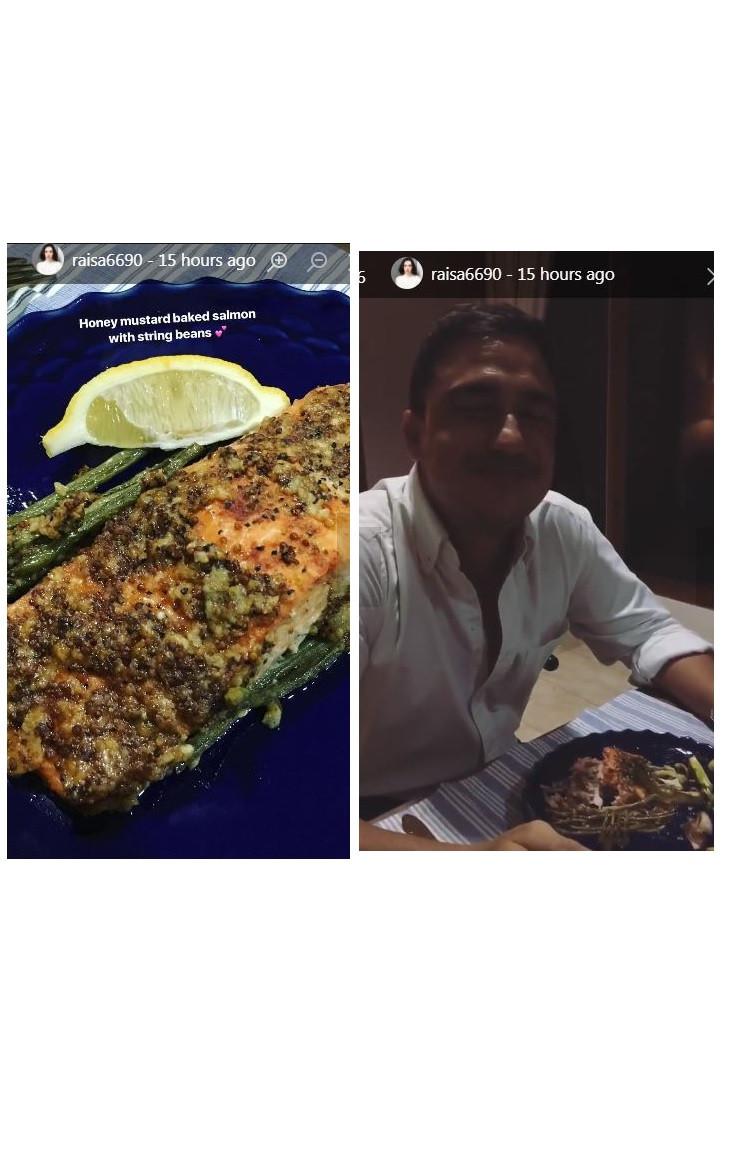 Menurut foto yang diunggah Raisa sebelum video tersebut, hidangan yang dimakan Hamish Daud bernama "Honey Mustard Baked Salmon with String Beans" atau "Salmon Panggang Mustar Madu dengan Buncis".