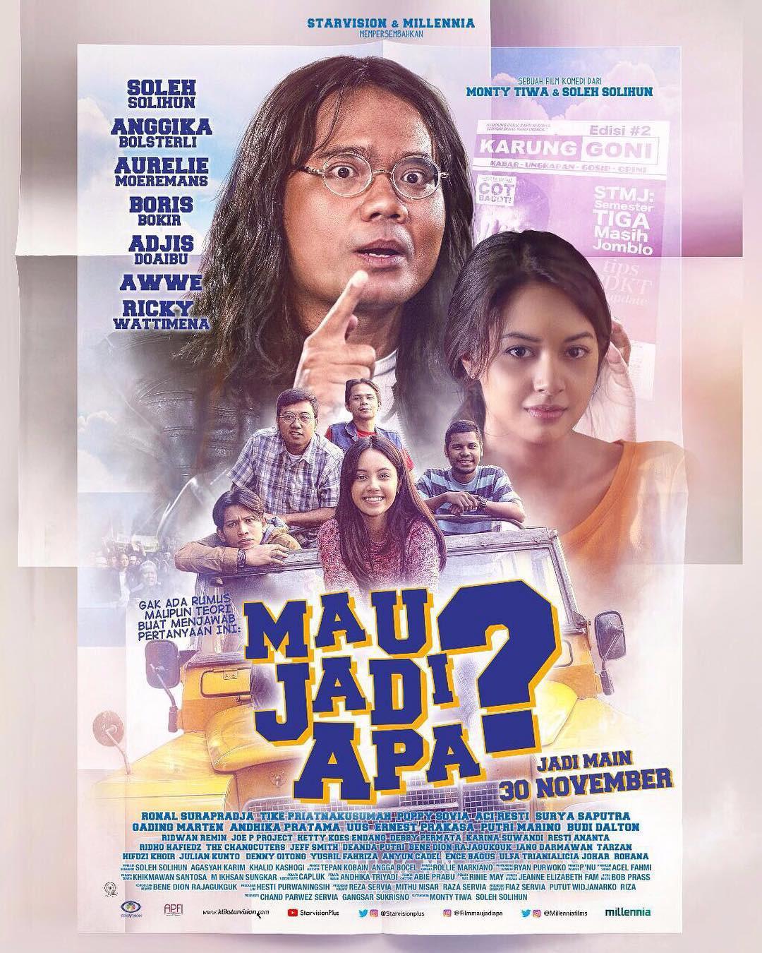 Film bergenre komedi ini, akan dibintangi oleh Aurelie Moeremans, Ronal Surapradja, Anggika Bolsterli, juga sejumlah pelaku stand up comedy seperti Boris Bokir, Adjisdoaibu dan Awwe. Mau Jadi Apa? akan tayang di bioskop Tanah Air pada 30 November mendatang.