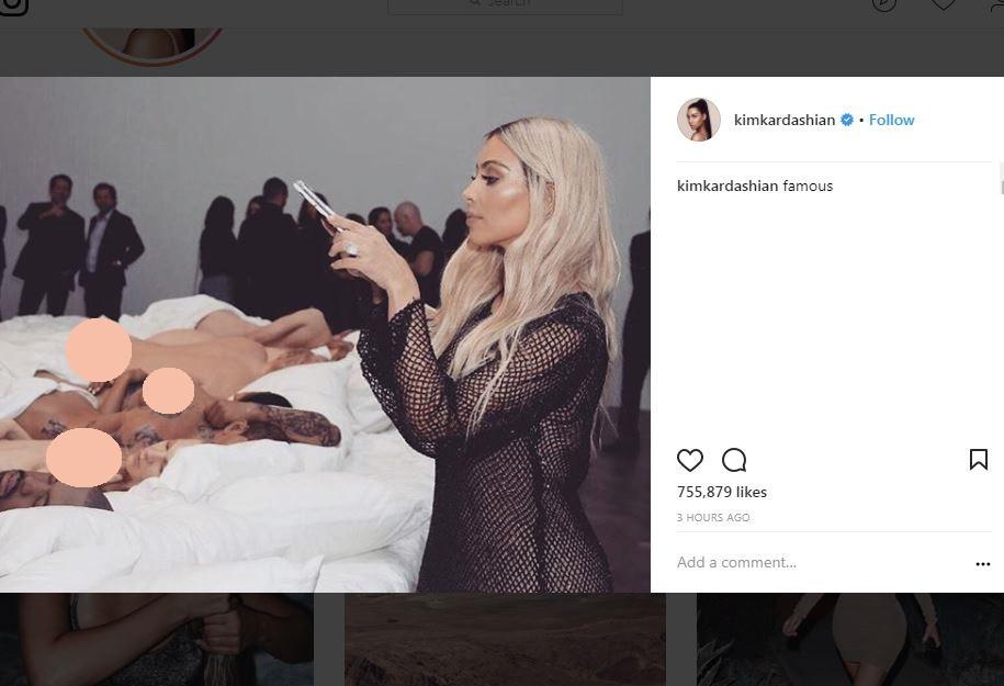 Ibu dua anak itu mengunggah foto dirinya yang tengah memotret patung lilin sejumlah bintang terkenal, termasuk Taylor Swift, yang muncul dalam videoklip kontroversial Kanye West, "Famous".