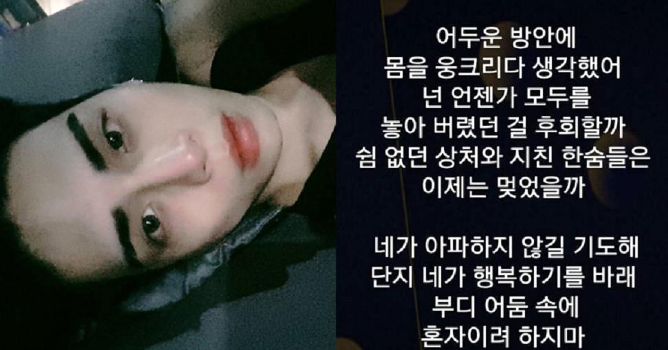 November lalu, penyanyi bermarga Kim ini rupanya sempat membuat unggahan yang seolah menggambarkan kegundahan di hatinya. Ia mengunggah sebuah foto yang bertuliskan lirik lagu dari Dear Cloud berjudul "Beside You."