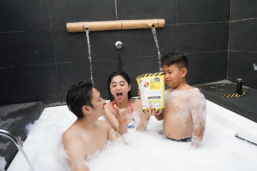 Liputan6.com, Jakarta - Kebahagiaan Dewi Perssik selama liburan di Maladewa bersama sang suami, Angga Wijaya, serta anak angkatnya, Gabriel, terus dipamerkan di akun Instagramnya. Salah satu pose terbarunya adalah ketika mereka bertiga sedang mandi bertiga di dalam bak penuh dengan busa.