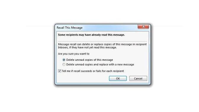 Pengguna bakal diberi dua pilihan, satu untuk menghapus email yang dibatalkan, satu lagi untuk menghapus pesan yang dibatalkan lalu menggantinya dengan sebuah email baru.