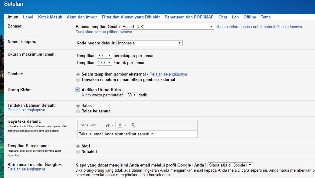Pertama, buka Setting atau Setelan pada Gmail kamu (ditandai dengan ikon gir, yakni di bawah foto pengguna. Klik menu "Setting", kemudian kamu bisa mengaktifkan pilihan Undo Sent/Urung Kirim dengan memberikan tanda centang.