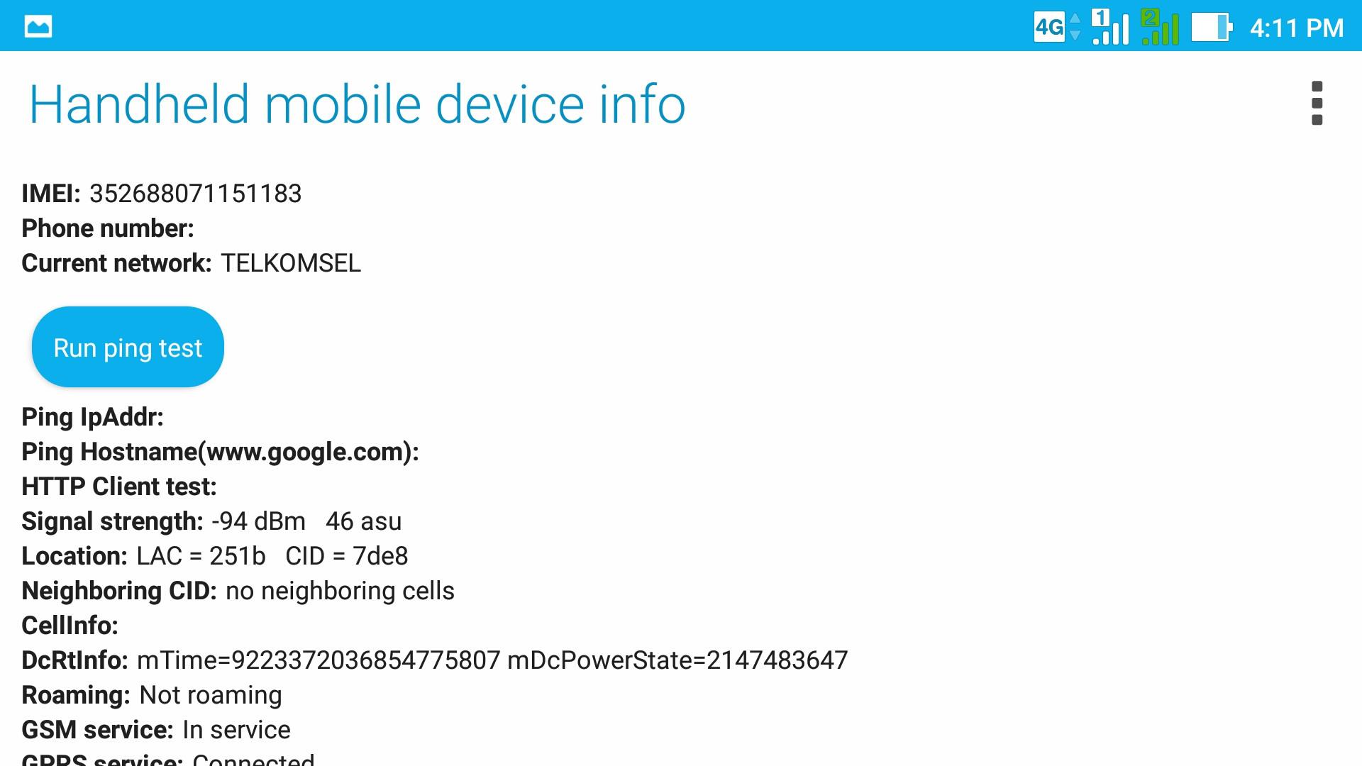 Pilih Device Information, lalu akan tampil berbagai informasi tentang perangkat kamu, mulai dari nomor IMEI, kekuatan sinyal, jaringan yang saat ini digunakan, dam lain-lain.