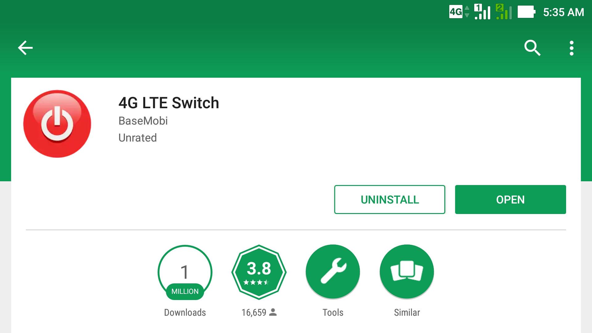 Di Google Play Store ada beberapa aplikasi dengan fungsi seperti itu. Salah satu aplikasi yang kami rekomendasikan adalah 4G Switcher (4G LTE Switch).