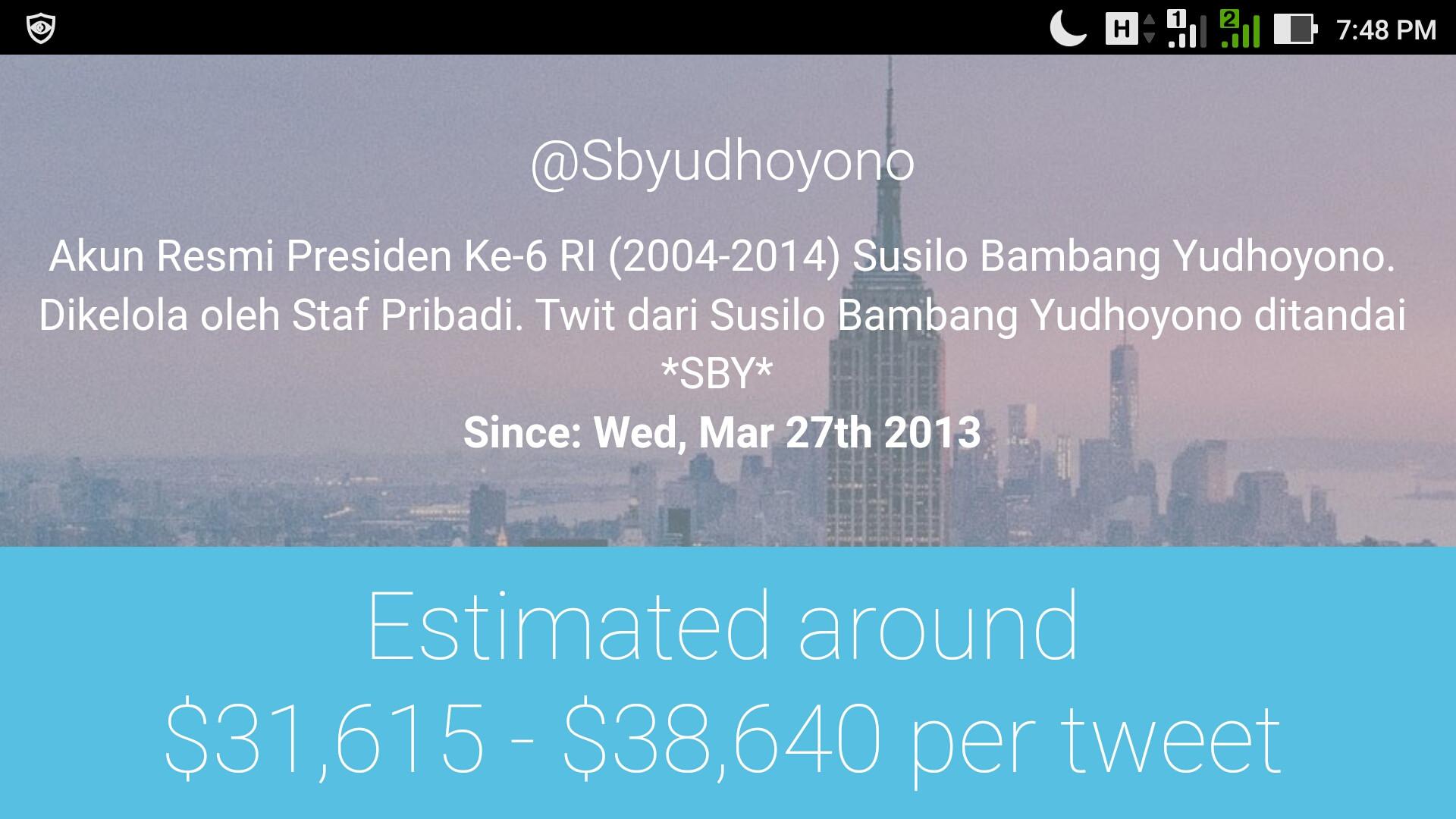 2. Estimasi pemasukan akun Twitter @SBYudhoyono