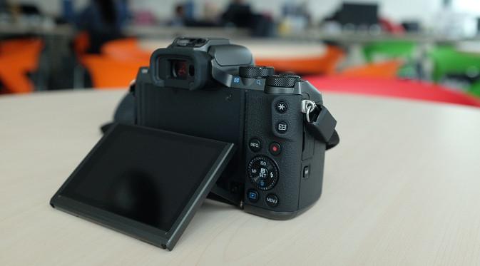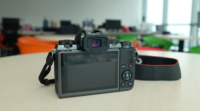 Bodi bagian belakang EOS M5 juga dipadati dengan sejumlah tombol navigasi dan sebuah layar LCD touchscreen.