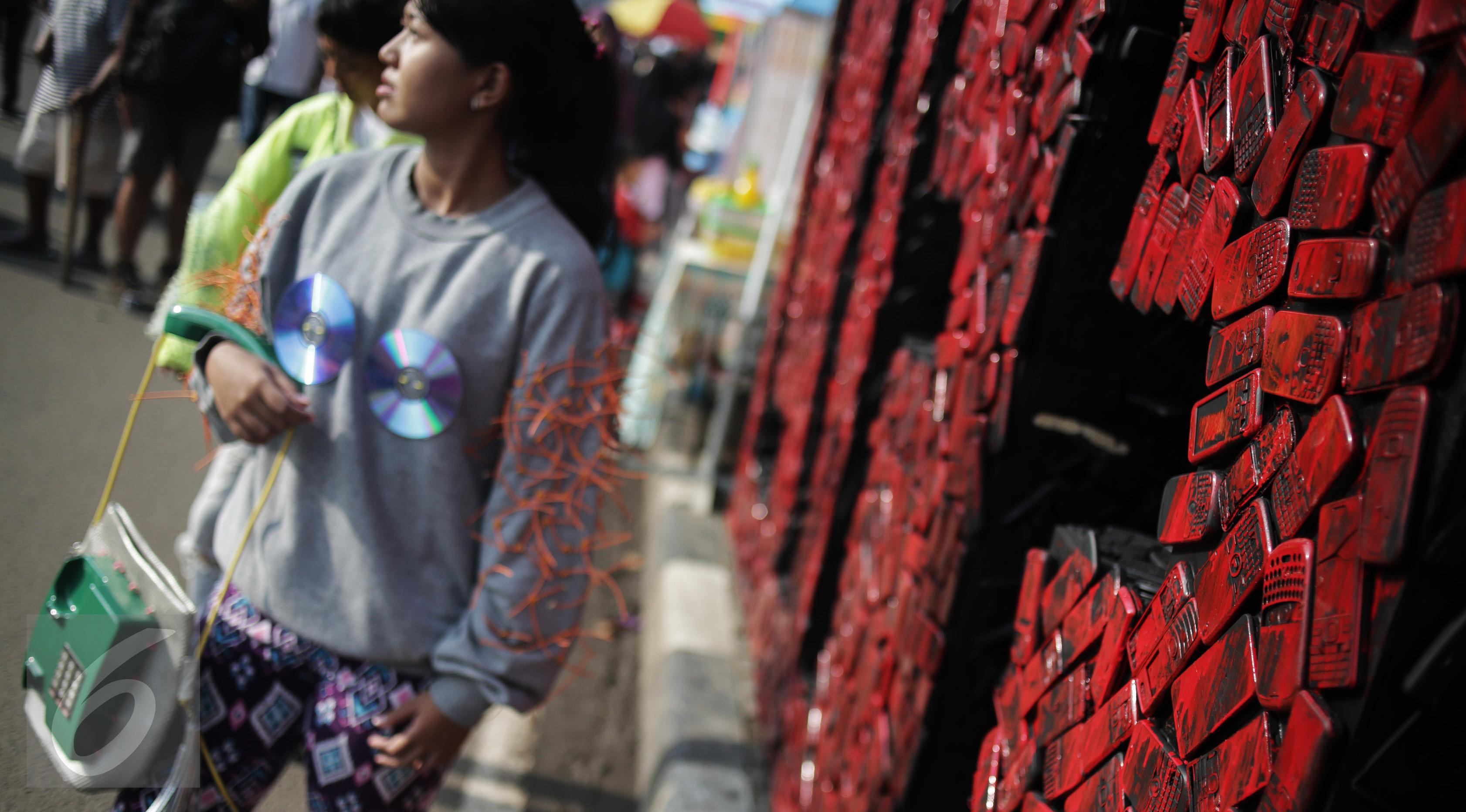 Selain instalasi seni dari ponsel bekas, para aktivis juga menampilkan sejumlah olahan daur ulang dari limbah perangkat elektronik, seperti busana dari limbah kabel dan tas dari limbah telepon.