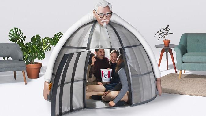 Terbaru, KFC baru saja memperkenalkan sebuah tenda unik untuk berkumpul para konsumen. Diberi nama Internet Escape Pod, tenda ini memiliki desain bundar dengan patung Kolonel Sanders berada di atasnya.